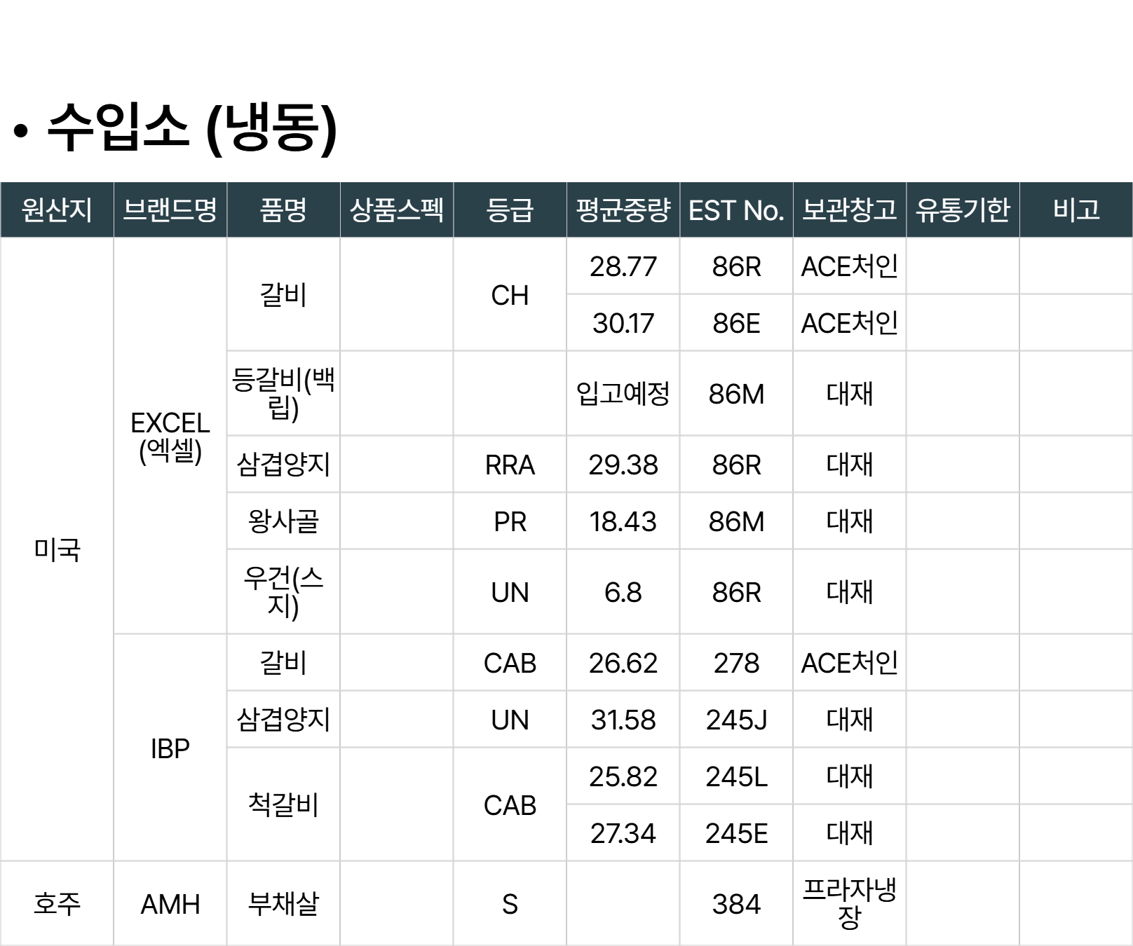 - IBP / 등급: CAB / EST: 245L / 평중: 25.82 / 창고: 대재