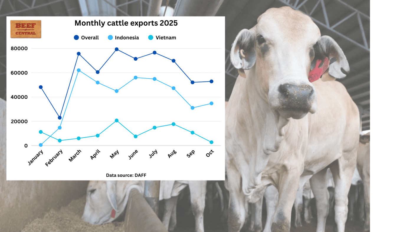 신흥 시장인 멕시코는 10월에 5,096마리를 추가로 수입하여 호주산 소의 두 번째로 큰 수출지가 되었고, 올해 멕시코 시장의 총 수출량은 20,837마리에 달했습니다.