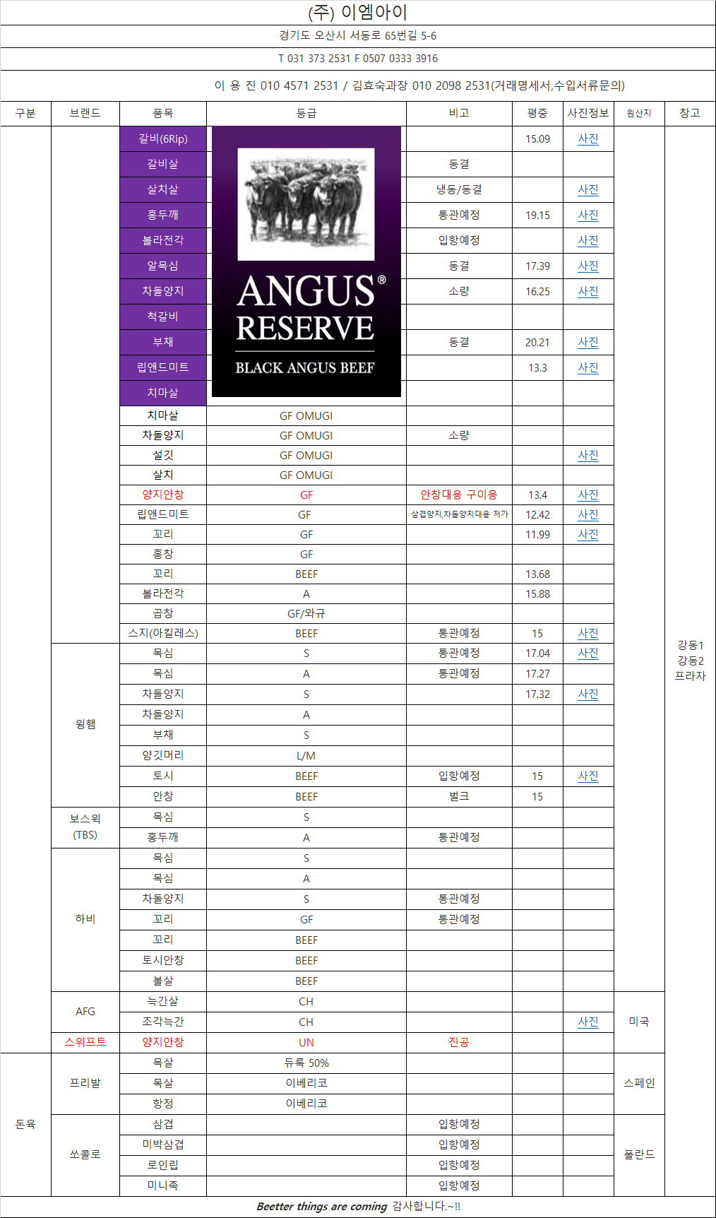 (주)로드프리미엄 품목표