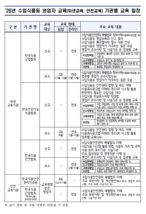 2026년+수입식품등+영업자+교육(위생교육,+안전교육)+기관별+교육+일정.pdf