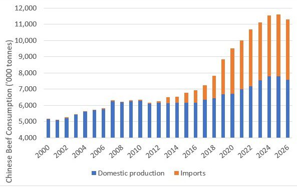 코흐 씨는 이 보고서에서 제재 조치가 시행됨에 따라 2026년 하반기에는 최대 10만 톤의 호주산 쇠고기와 60만 톤의 브라질산 쇠고기가 중국 이외 지역에서 새로운 수출처를 찾아야 할 것이라고 예측했습니다 .