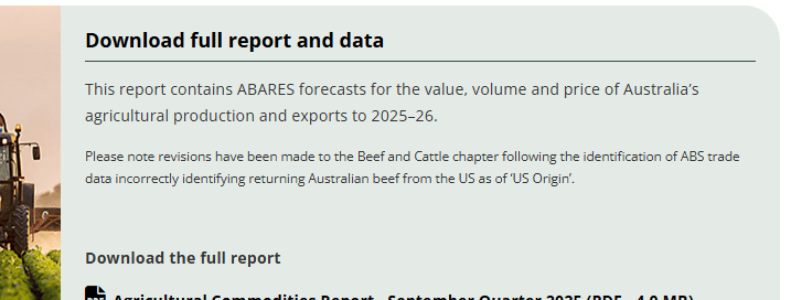 ABARES 2025년 9월 농산물 보고서의 쇠고기 및 소 주석이 개정되었습니다.