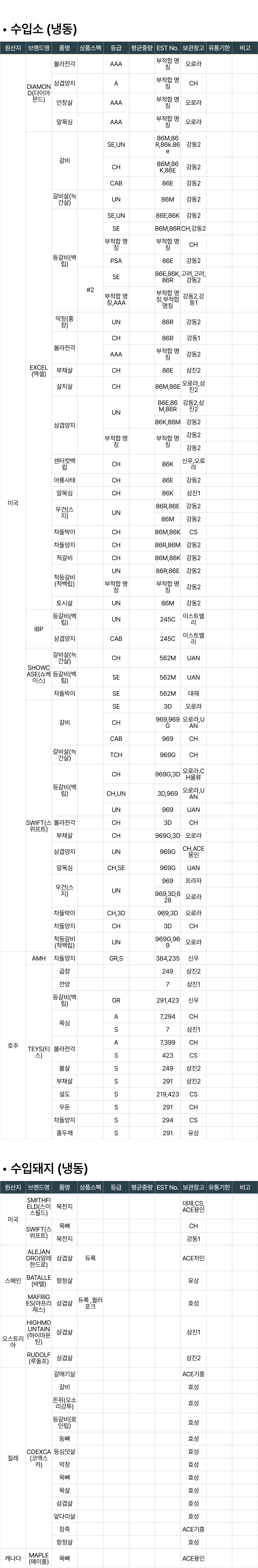 - SWIFT(스위프트) / 등급: CH,UN / EST: 3D,969 / 창고: 오로라,UAN